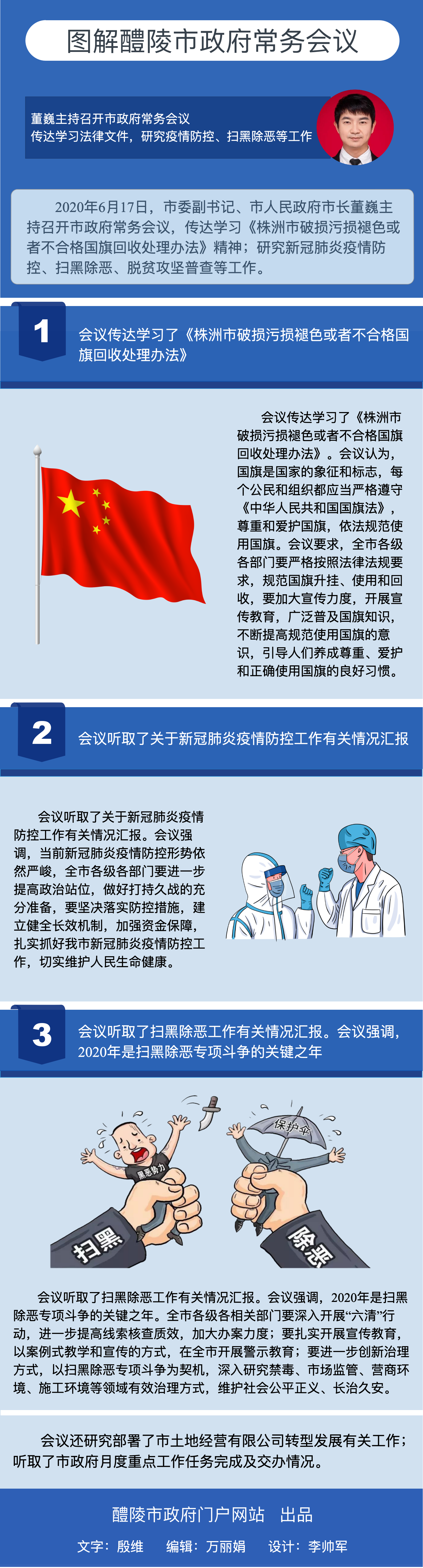 【图解】6月17日醴陵市政府常务会议:传达学习《株洲市破损污损褪色或者不合格国旗回收处理办法》精神;研究新冠肺炎疫情防控、扫黑除恶、脱贫攻坚普查等工作
