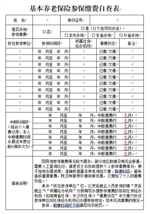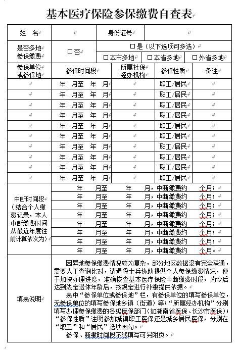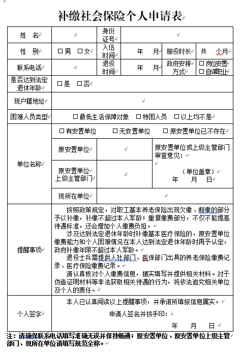 (3)填写《补缴社会保险个人申请表》和《基本养老保险参保缴费自查表》《基本医疗保险参保缴费自查表》(相关表格可关注醴陵市退役军人事务局的公众号或官网,下载后自行打印,也可以到当地退役军人事务部门设立的申请受理点领取)。