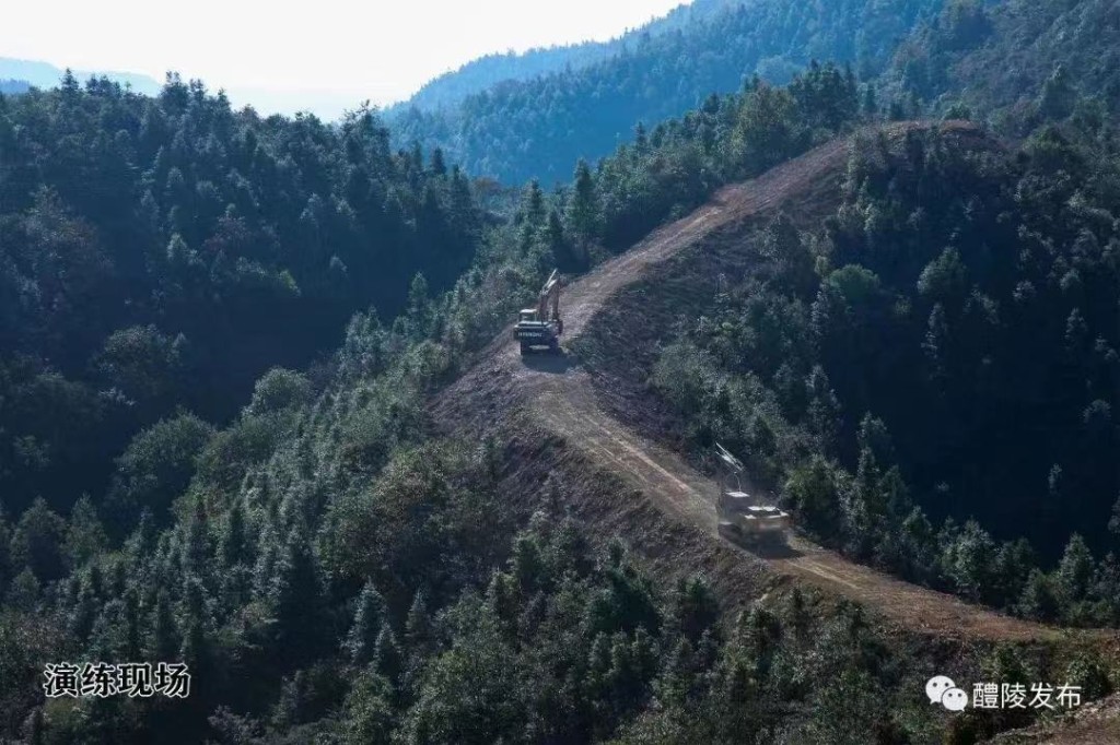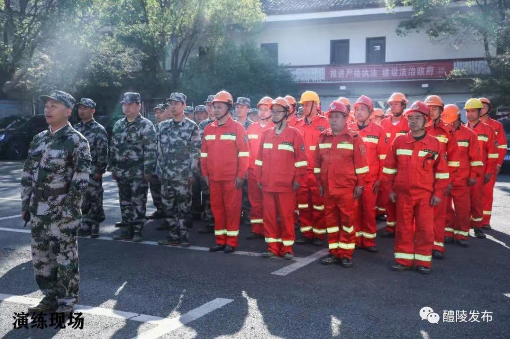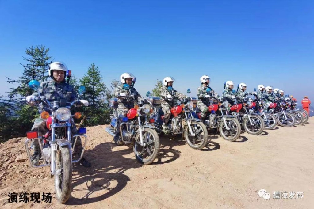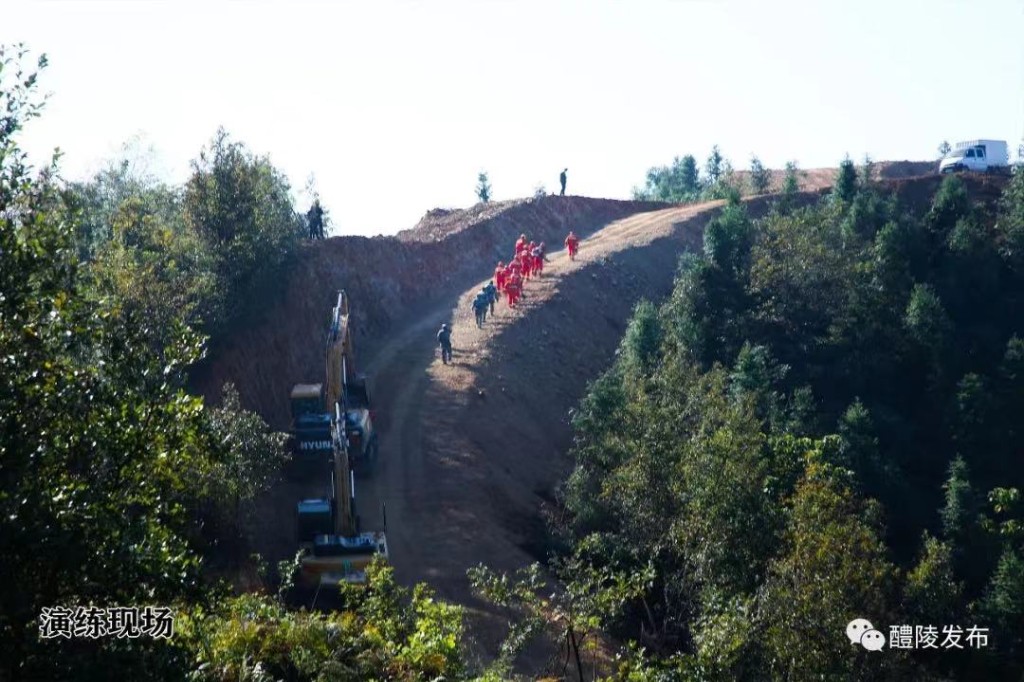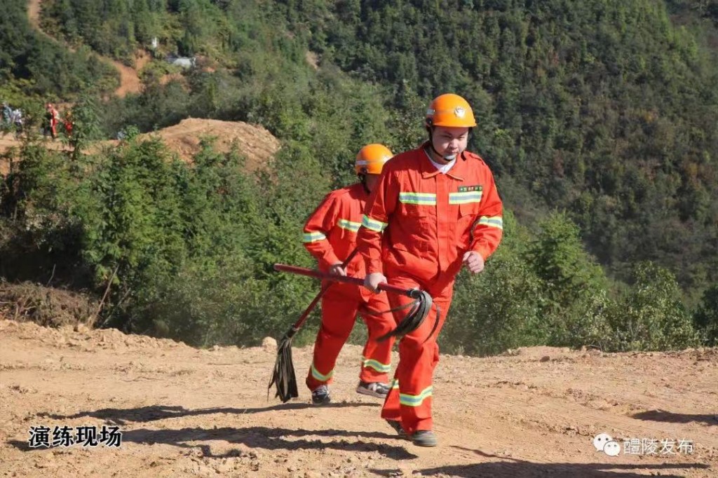 此次演练模拟沩山镇沩山村发生森林火情。接到报告后,镇村迅速启动防灭火应急预案,立即成立现场指挥部,15分钟内组织应急队伍50人。大家带上灭火装备,乘坐6辆皮卡车和10辆摩托车赶赴现场,同时,组织1台消防车、2台大型挖机参加扑救。沩山村方面,也组织起了一支30人的应急救援队伍。现场人员报告,受地势和风向影响,火情有继续蔓延的倾向,经研判,火情等级升为红色。