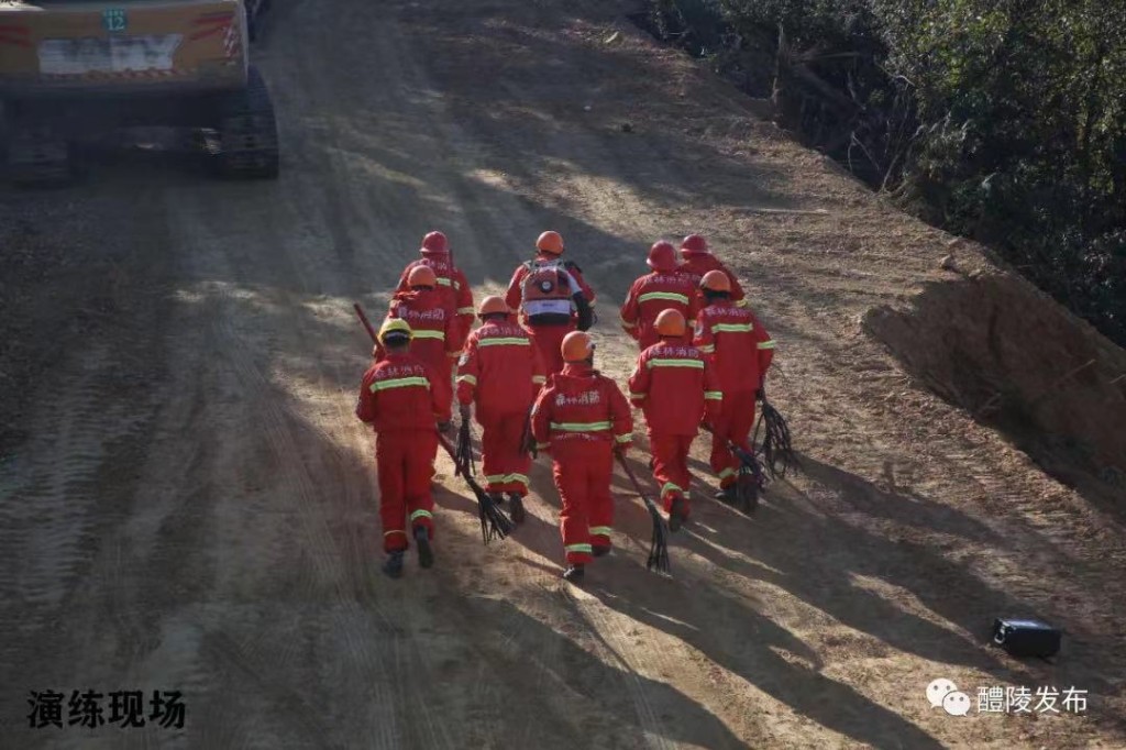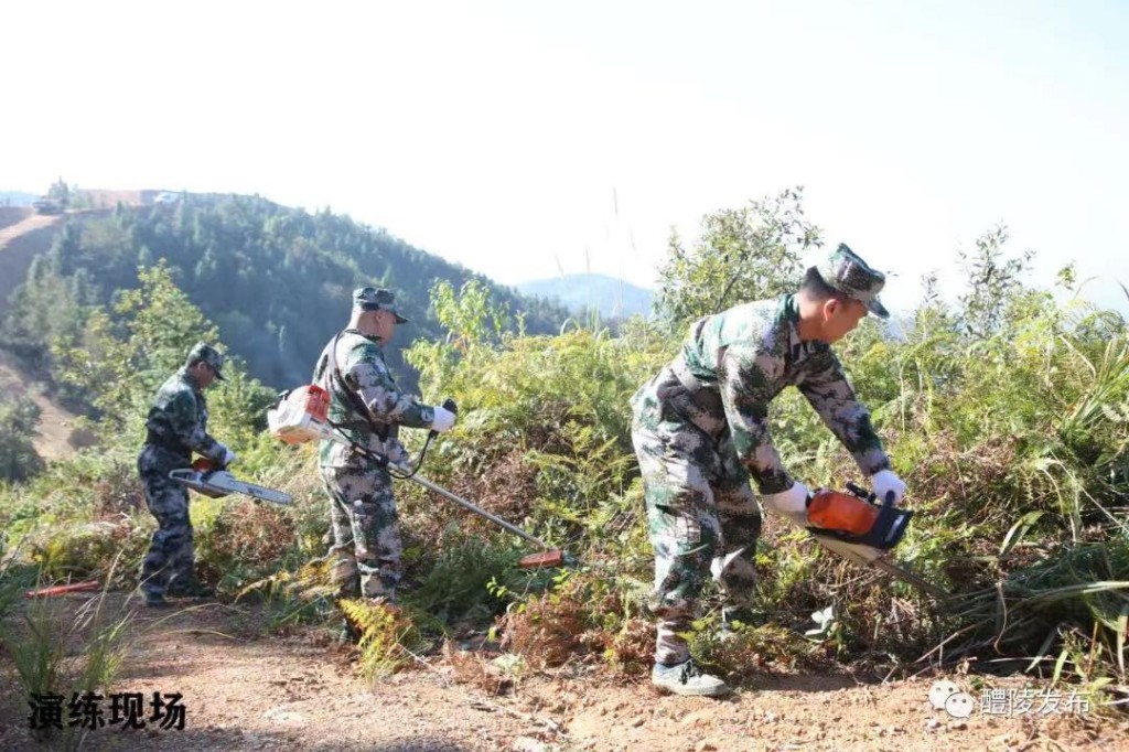 实战演练中,指挥部根据现场火情迅速制定扑救方案,决定调集2台挖机沿山开辟防火隔离带;扑火组、人工防火隔离带组分别构建防火线和人工防火隔离带。沩山村应急队员在已扑灭明火地域喷雾洒水和驻守,防止山火复燃。灭完火后,部分人员看守现场,防止返火复燃,其余人员回到临时指挥部待命。