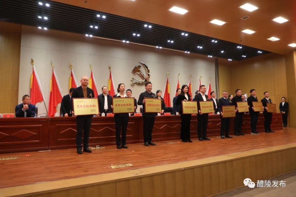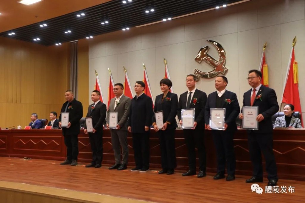 现场,为一批获奖企业和个人进行了颁奖,王利波向外出招商工作小组授旗,刘新华为2023年招商特使颁发证书,市委组织部、市“三高”办、市科工信局等部门单位安排了表态发言。
