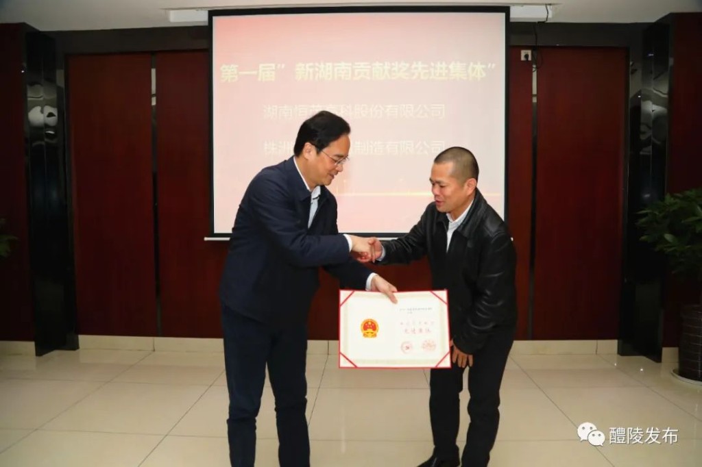 餐叙过程中,王利波还为获得第一届“新湖南贡献奖先进集体”和“新湖南贡献奖先进个人”的单位与个人颁奖。
