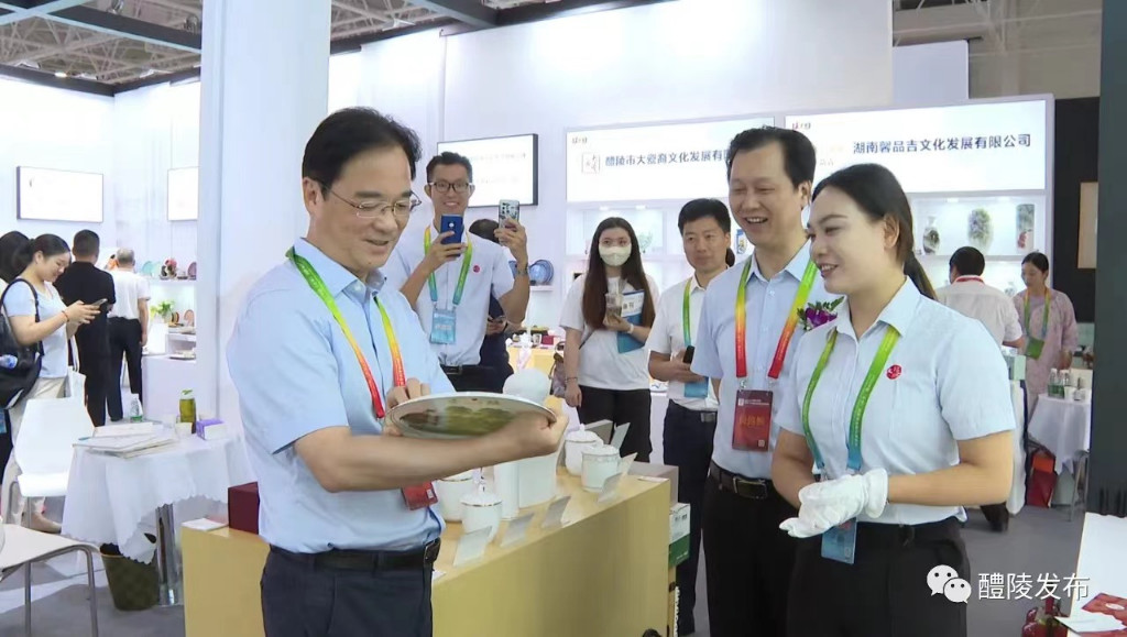 王利波、贺小玲前往“千年瓷都·天下醴陵”区域品牌展厅,看望醴陵参展企业代表。此次,我市共有12家陶瓷企业、54名陶瓷艺人组团参展,展位面积360平方米。在红官窑、陶润会、醴泉窑、振美艺术陶瓷、德兴瓷业等企业展厅,以及唐山、潮州、淄博等地展区,我市领导深入现场走访调研,并与参展代表互动交流。王利波说:近年来,醴陵各大陶瓷企业积极抱团“走出去”参与各类展会,区域品牌影响力越来越大。要抓住展览契机,充分发挥陶瓷产区优势,加大品牌、产品宣传力度,提升醴瓷知名度;还要从材料、器型、技艺等方面积极创新,打造差异化产品,提高辨识度;同时,还要重视人才培养,培育、吸纳多层次的陶瓷应用型人才,助推醴陵陶瓷产业创新发展。