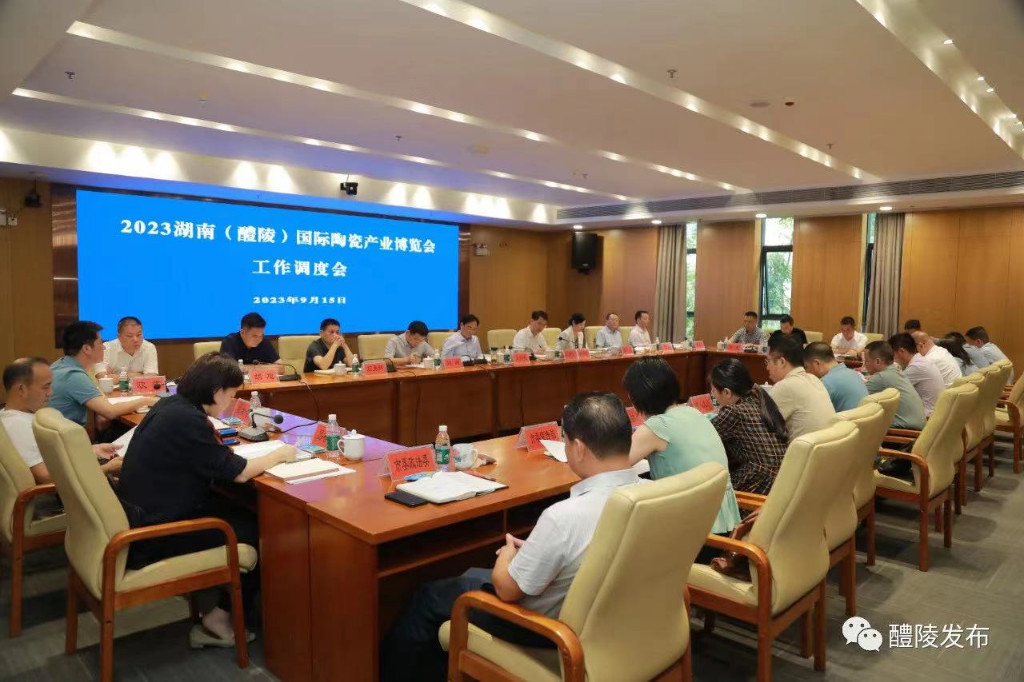 9月15日下午,我市召开2023湖南(醴陵)国际陶瓷产业博览会工作调度会。市委书记、经开区党工委第一书记王利波讲话,市委副书记、市长刘新华主持,市委副书记、沈潭镇党委书记阳建,市人大常委会主任贺小玲参加。