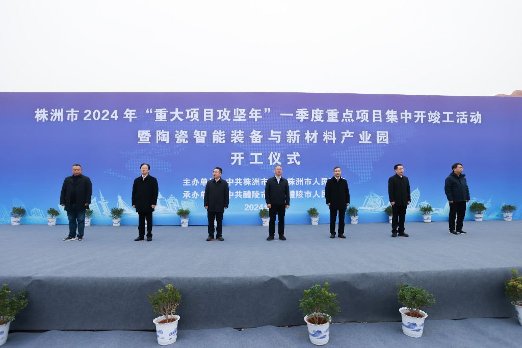 1月9日,株洲市2024年“重大项目攻坚年”一季度重点项目集中开竣工活动暨陶瓷智能装备与新材料产业园开工仪式在我市左权镇举行,株洲市委书记曹慧泉宣布开工,株洲市委副书记、市长陈恢清讲话,株洲市领导阳望平、杨英杰、易湘东,我市领导王利波、刘新华参加。