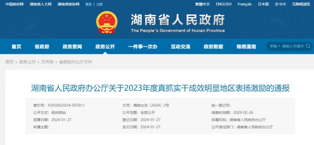 来源:湖南省人民政府网