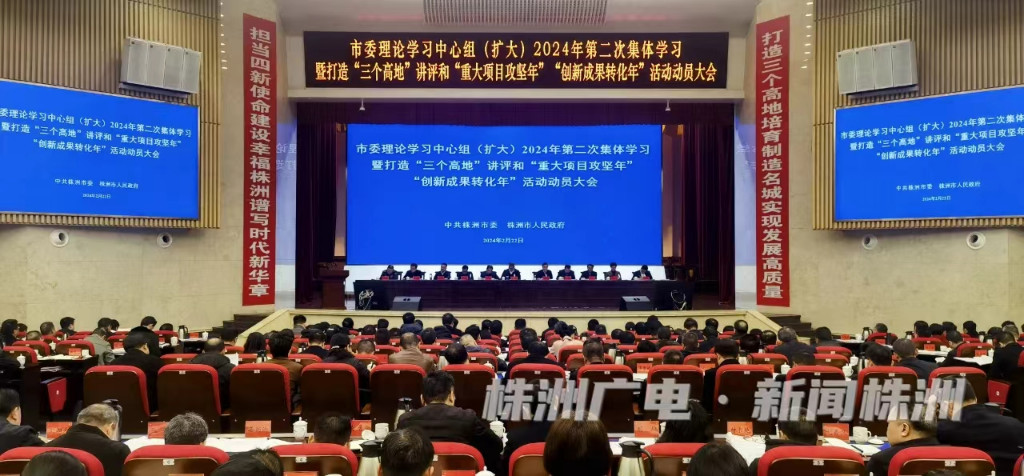 2月22日上午,株洲市委理论学习中心组(扩大)2024年第二次集体学习暨打造“三个高地”讲评和“重大项目攻坚年”“创新成果转化年”活动动员大会举行。株洲市委书记曹慧泉主持会议并讲话。株洲市委副书记、市长陈恢清讲话。