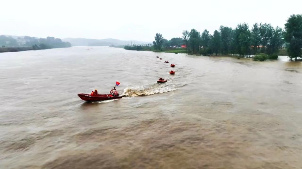 根据各方汇集的信息,现场指挥部下设的抢险救援、技术指导、综合保障、安全保卫、医疗救护等7个工作小组分工协作、密切配合,高效投入救援演练任务。演练科目一:冲锋舟水域编队搜救和无人机、橡皮艇搜救。现场,冲锋舟、抗洪抢险分队、搜救无人机、橡皮艇编队等迅速完成纵队变换、水面搜索、飞行侦查、机器人联合救援等演练。演练科目二:直升机空中救援。现场,指挥部调度株洲航空救援队直升机前往江中小岛目标地点开展救援,迅速完成人员搜寻,并由消防员协助被困人员穿戴好安全吊带,吊升飞离危险区域。演练科目三:孤岛救援和地灾避险转移。镇政府工作人员按照现场指挥部指令,立即组织地灾附近村民紧急疏散转移避险,撤离至临时安置点。6艘救援艇出动,完成孤岛被困人员救援。演练科目四:子堤筑建、管涌险情处置和水库险情处置。发现管涌漫堤险情,指挥部立即分组制定处置方案,安排技术人员前往险情点,按照抢险方案开展堵漏施工,对大坝进行子堤加固,完成水库紧急排涝作业。险情排除后,指挥部根据气象、地质条件展开会商,下达解除防汛Ⅱ级应急响应指令。