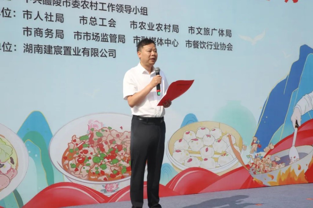 市委常委、副市长杨冬发致辞时说:近年来,市委、市政府高度重视“端稳中国粮、做香湖南饭、做优醴陵菜”工作,举办首届“醴陵名厨”评选活动,意在进一步挖掘和传承醴陵餐饮文化内涵,激励广大厨师不断创新技艺,加快培育优秀厨师,推动醴陵菜更好“走出去”“香起来”。希望通过本次活动,搭建交流学习、展示技艺的平台,促进醴陵餐饮行业的交流与合作,共同推动醴陵餐饮行业向更高质量、更高水平发展;希望各位评委秉持公平、公正、公开的原则,认真品鉴,严格把关,评选出真正代表醴陵餐饮水平的名厨;希望各位参赛选手严格遵守大赛规则,充分展示高超技艺,赛出风格、赛出水平,互相交流、增进友谊。