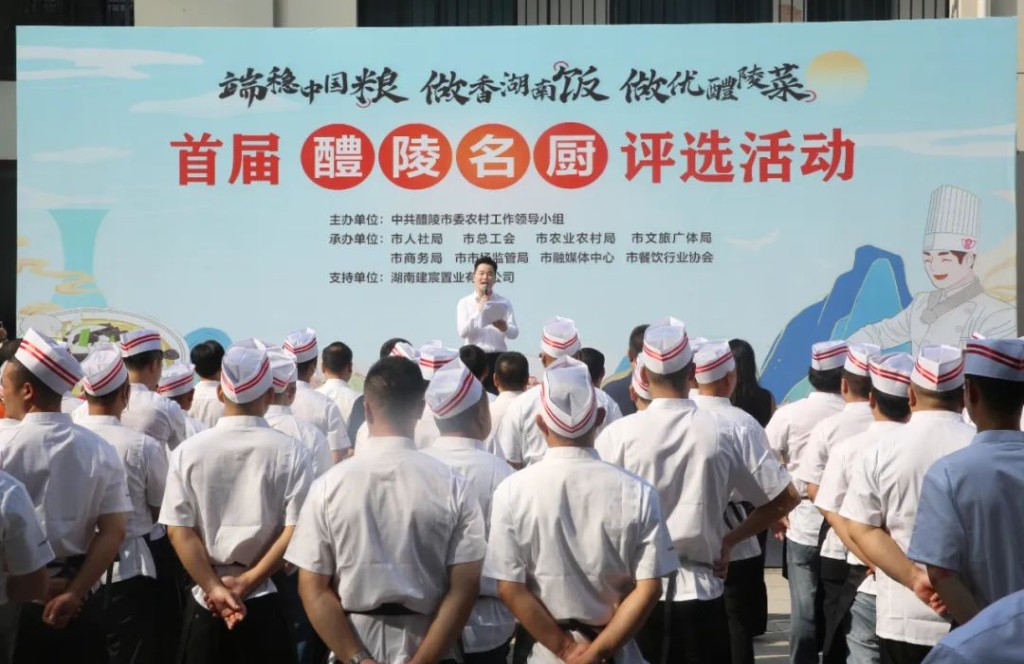 上午九点,阳建宣布“端稳中国粮、做香湖南饭、做优醴陵菜”首届“醴陵名厨”评选活动开始并鸣锣。