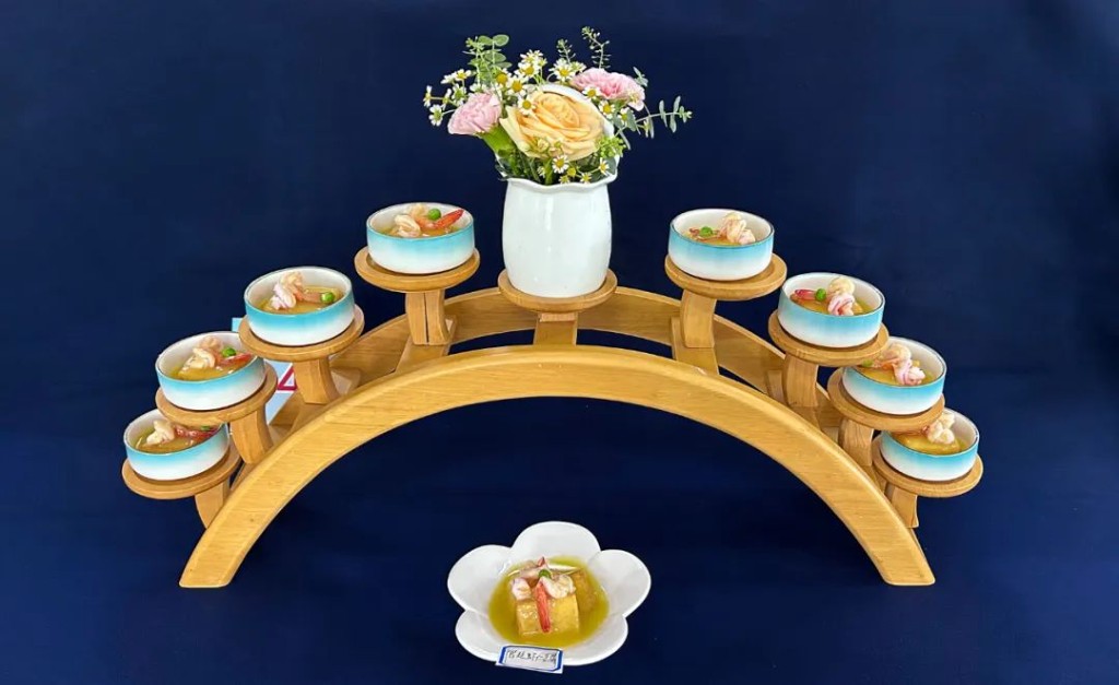 现场,参赛选手分两批次展开比拼,大家熟练完成食材切割,锅起瓢落间,尽显专业风范。没多久,一道道热气腾腾的佳肴先后被端上评比桌,18位专业评审现场品鉴。经过对菜色、味道、摆盘、现场烹饪表现等方面的综合评分,最终苏先球、张理、樊子芳等前20名选手被授予“醴陵名厨”称号。