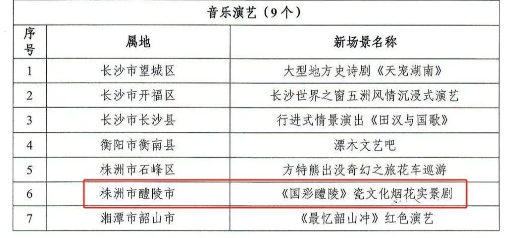 9月20日,2024湖南文旅产业投融资大会在衡阳举办。现场,发布了第二批湖南文旅消费“新生代•新场景”名单,其中,醴陵市的《国彩醴陵》瓷文化烟花实景剧入选音乐演艺新场景,华盛瓷业陶瓷研学基地入选研学亲子新场景。