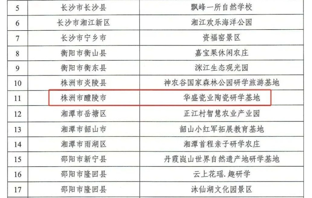 华盛瓷业位于仙岳山街道万宜村,“来醴陵,捡瓷器”火爆全网,也让华盛瓷业走进了更多人的视线。华盛瓷业是一家集釉下五彩瓷、高档出口日用瓷、艺术瓷研发设计、展览展示、生产销售、研学(教育)体验及工业旅游于一体的瓷企,他们将亲子研学定位为文化熏陶之旅、陶瓷艺术鉴赏之旅、传统工艺体验之旅,依托醴陵独创的釉下五彩工艺,让游客全方位、全流程体验成型、勾线、分水、精坯、烧成等工艺,零距离感受传统陶瓷艺术,感受中华传统文化的博大精深。