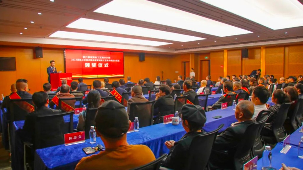 现场,醴陵市工艺美术协会相关负责人介绍了大赛情况,省工艺美术协会相关负责同志宣读了第六届湖南省工艺美术大师名单、2024湖南工艺美术精品展暨湖南工艺美术精品大奖赛获奖名单。记者了解到,醴陵市的陈利、魏楚斌、叶继鹏等14人获评第六届湖南省工艺美术大师。并且,在2024湖南工艺美术精品展暨湖南工艺美术精品大奖赛中,醴陵获得金奖13枚、银奖14枚、铜奖16枚。