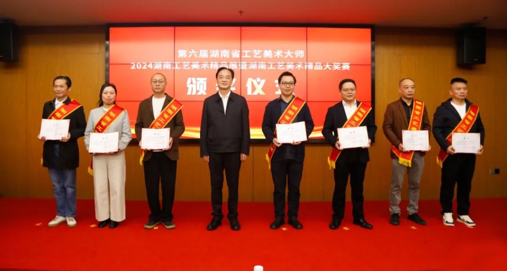 (王利波为第六届湖南省工艺美术大师颁奖)