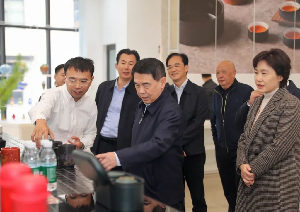 陶润集团2003年创立以来,日用陶瓷出口规模已达全国前三,产品远销50多个国家,现已成为Tesco、沃尔玛、迪士尼、星巴克等世界500强企业合作伙伴。在这里的炻瓷展厅(陶润会),蒋涤非详细了解产品特点、设计理念、创新元素,以及品牌推广情况。他说,要持续加大陶瓷文创的创新投入力度,深度挖掘陶瓷文化丰富内涵,把更多创意融入产品设计之中,不断提升附加值和市场竞争力。国光、群力瓷厂历史文化保护利用示范区位于醴陵中心城区,总面积44.78公顷。其中,原群力瓷厂区域是省工业遗产保护典范,已入选第六批国家工业遗产。蒋涤非详细了解历史变迁与发展脉络,询问核心建筑群的保护与利用情况。他说,要充分挖掘工业遗产的文化价值和旅游潜力,合理开发利用,让保护利用示范区“活起来”,成为推动醴陵经济发展和文化传承的新动力。蒋涤非督导过程中强调,要加强遗产保护,推动活化利用。充分运用相关政策,精心规划保护利用示范区建设,以醴陵陶瓷为核心,生动讲好醴陵陶瓷故事,全力促进工业遗产活态运用。要强化统筹规划,促进文旅融合。将保护利用示范区与周边文旅景点紧密结合、串珠成链,形成有机整体,大力推动文旅融合向纵深发展,实现文化传承与经济发展双赢。刘飞勇、王利波向蒋涤非详细介绍了醴陵陶瓷产业发展和陶瓷文化传承创新情况,同时表示:陶瓷是醴陵支柱产业,株洲、醴陵两级市委、市政府一直高度重视。未来,将继续按照上级要求,进一步加大扶持力度,切实强化工业遗产的保护与利用,深度挖掘陶瓷工业文化丰富内涵,大力推动陶瓷产业与文化旅游等多产业深度融合、协同发展。蒋涤非一行还实地走访了醴陵陶瓷博物馆、1915醴陵国际陶瓷文化特色街区等地,醴陵市领导尹世俊、雷向军等人参加。
