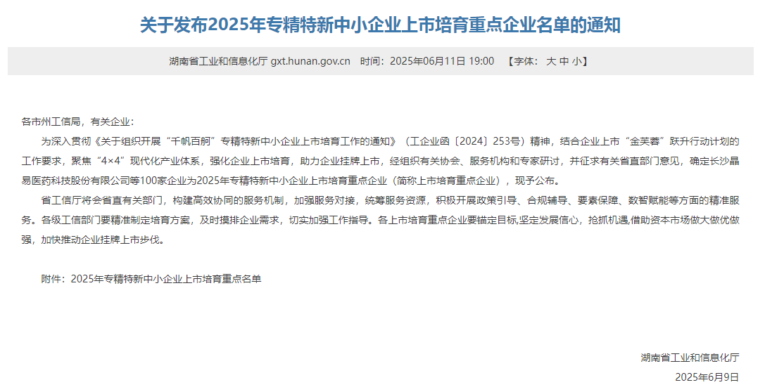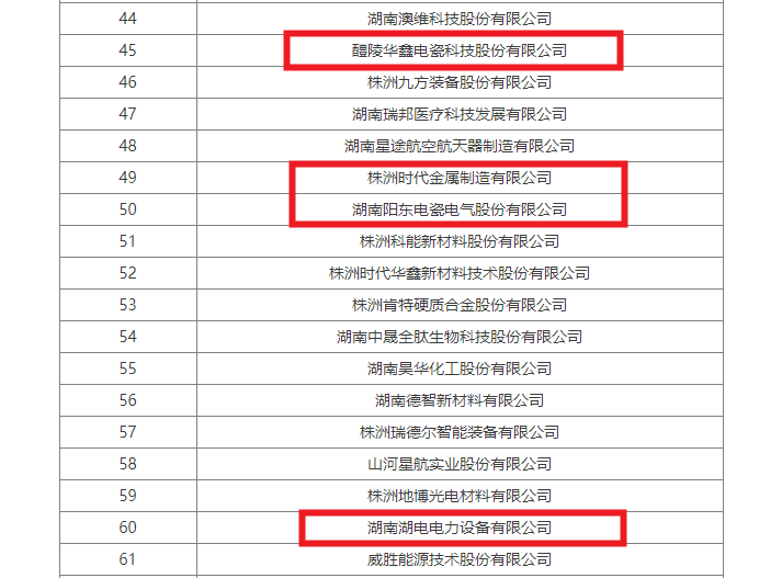 近日,湖南省工业和信息化厅发布了2025年专精特新中小企业上市培育重点企业名单,醴陵华鑫电瓷科技股份有限公司、株洲时代金属制造有限公司、湖南阳东电瓷电气股份有限公司、湖南湖电电力设备有限公司4家醴陵企业入选。