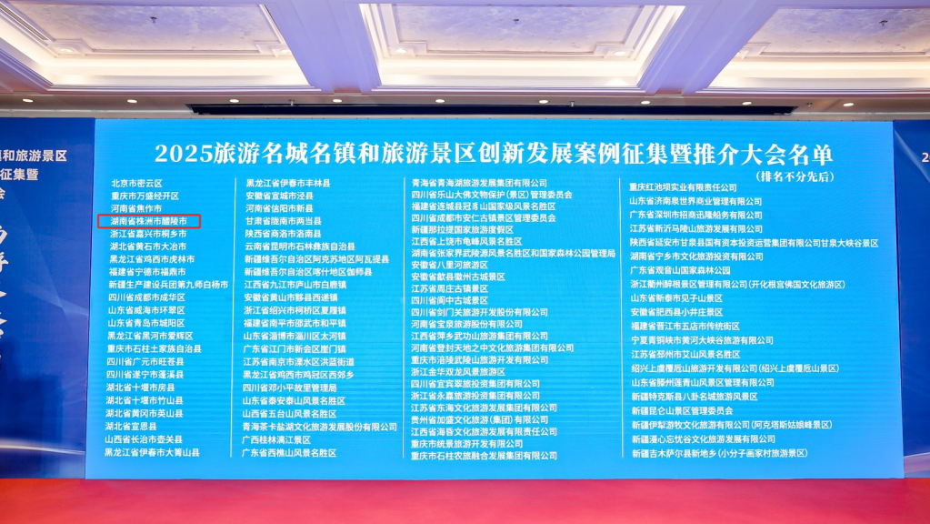 7月5日,“畅游大美中国 共享美好生活”2025旅游名城名镇和旅游景区创新发展案例征集暨推介大会在北京举行,会上醴陵获评2025旅游名城创新发展案例以及2025旅游目的地创新发展案例。
