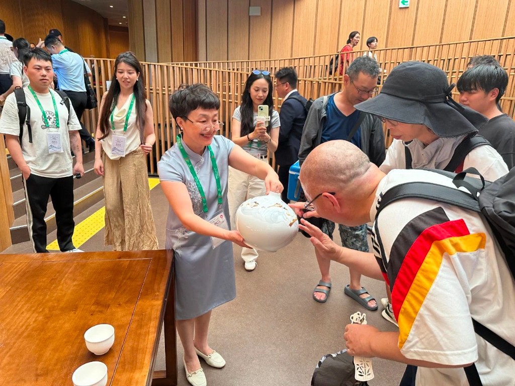 “我们通过手势和动作指导他们控制笔触,他们也通过实践亲身体验到了中国工艺的神奇。”非遗技艺的展示不仅是静态陈列,更是动态的文化交流。陈利与黄永平通过现场教学,引导观众亲手触摸素坯、尝试勾线分水。语言虽不通,但技艺的传递成功跨越了障碍。