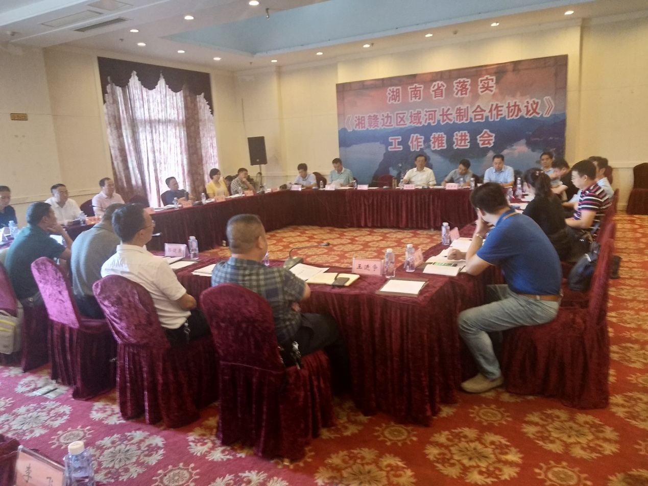 9月26日下午,湖南省落实《湘赣边区域河长制合作协议》工作推进会在醴陵市新太阳国际大酒店召开,省水利厅副巡视员杨光鑫出席会议并讲话,湖南省水利厅河长制工作处处长周新章主持会议。省水利厅规划与科技处副处长邓命华以及长沙市、株洲市、岳阳市、郴州市和浏阳市、醴陵市、平江县、汝城县、桂东县等湘赣边区域五市十县(市、区)河长办负责同志及联络员参加会议。