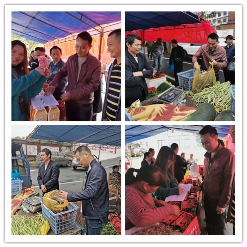 一大早明月镇政府操场内人来人往,暖意洋洋,来自贫困户家中自产的冬瓜、茄子、红薯、柚子等各类蔬果及明月镇特色产品剁辣椒、辣椒粉等摆满了展位,来自机关、后盾单位、企业单位的干部职工和附近老百姓,纷纷伸出援助之手,购买贫困劳动者生产的农副产品。