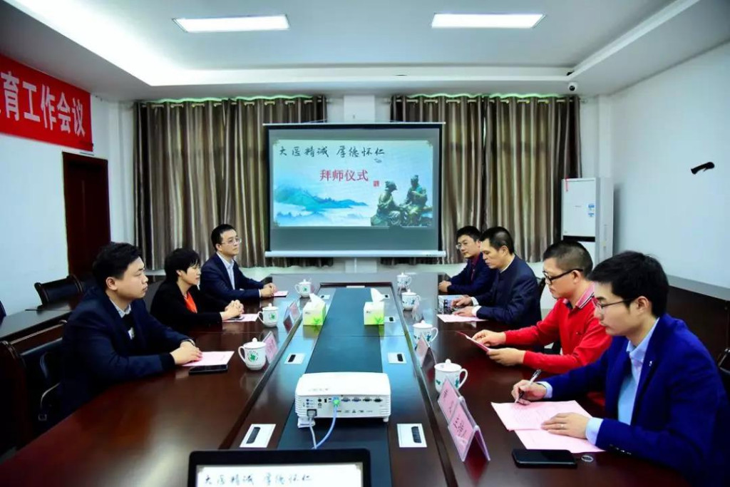 10月18日,“大医精诚·厚德怀仁”拜师仪式在醴陵市中医院举行,来自台湾的白棋安拜醴陵市中医院院长、主任医师谭海彦,市中医院针灸疼痛科主任、副主任医师林清启为师。