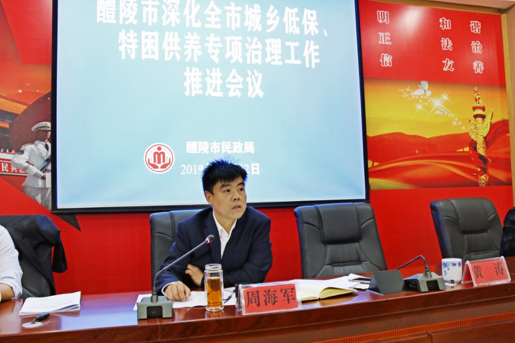 10月22日,醴陵市当前民政重点工作推进会议召开。集中学习《2019年醴陵市城乡低保及特困供养专项治理工作方案》,专门就深化全市城乡低保、特困供养专项治理工作进行安排部署,对2019年全市老年人意外保险工作作总结表彰。市民政局党组书记、局长周海军参加会议并对相关工作作强调讲话。