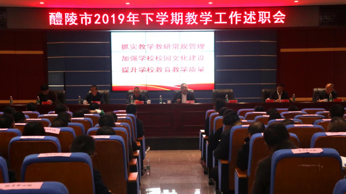 为进一步强化质量意识,加强学校教学管理,提升教育教学水平,推动教育内涵发展,办好人民满意的教育,12月18日,醴陵市2019年下学期教学工作述职会在四中图书馆举行。市教育局机关全体班子成员、股室长;市直学校、中心学校、民办学校校长及分管教育教学工作的副校长;管片督学;片区督学责任区组长;乡镇(街道)初中学校校长、中心小学校长等近200人参加会议。市教育局党委委员、副局长王清波主持。
