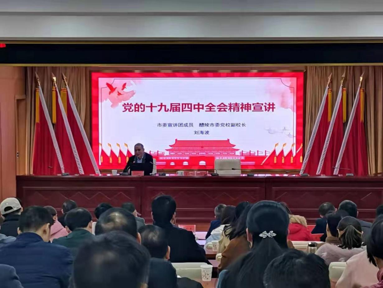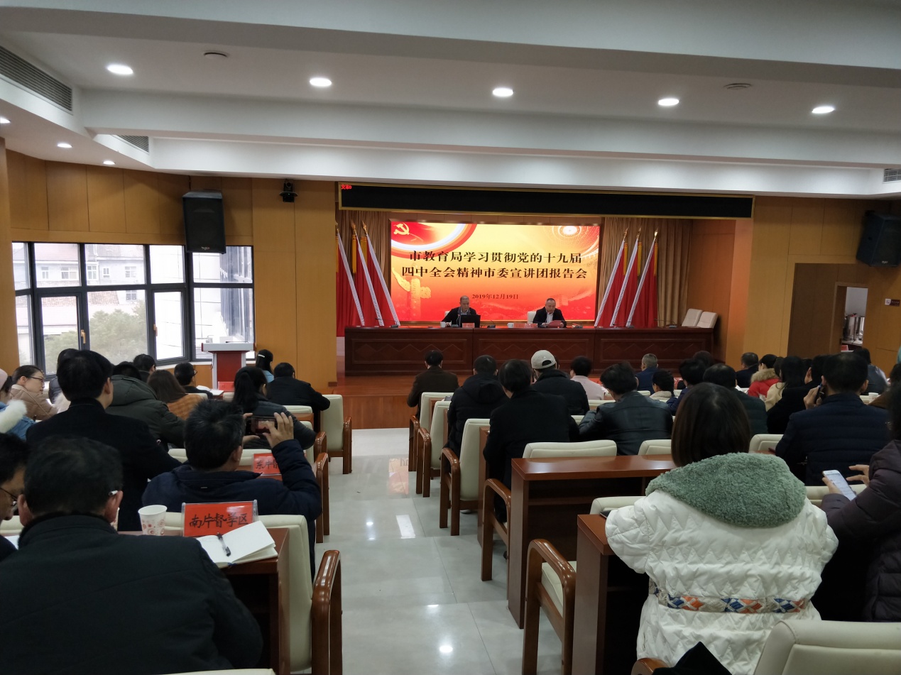 12月19日下午,醴陵市教育局举行党的十九届四中全会精神宣讲报告会,市委宣讲团成员、市委党校副校长刘海波作宣讲报告,市教育局全体机关干部参加,市教育局党委书记、局长谢世军主持。