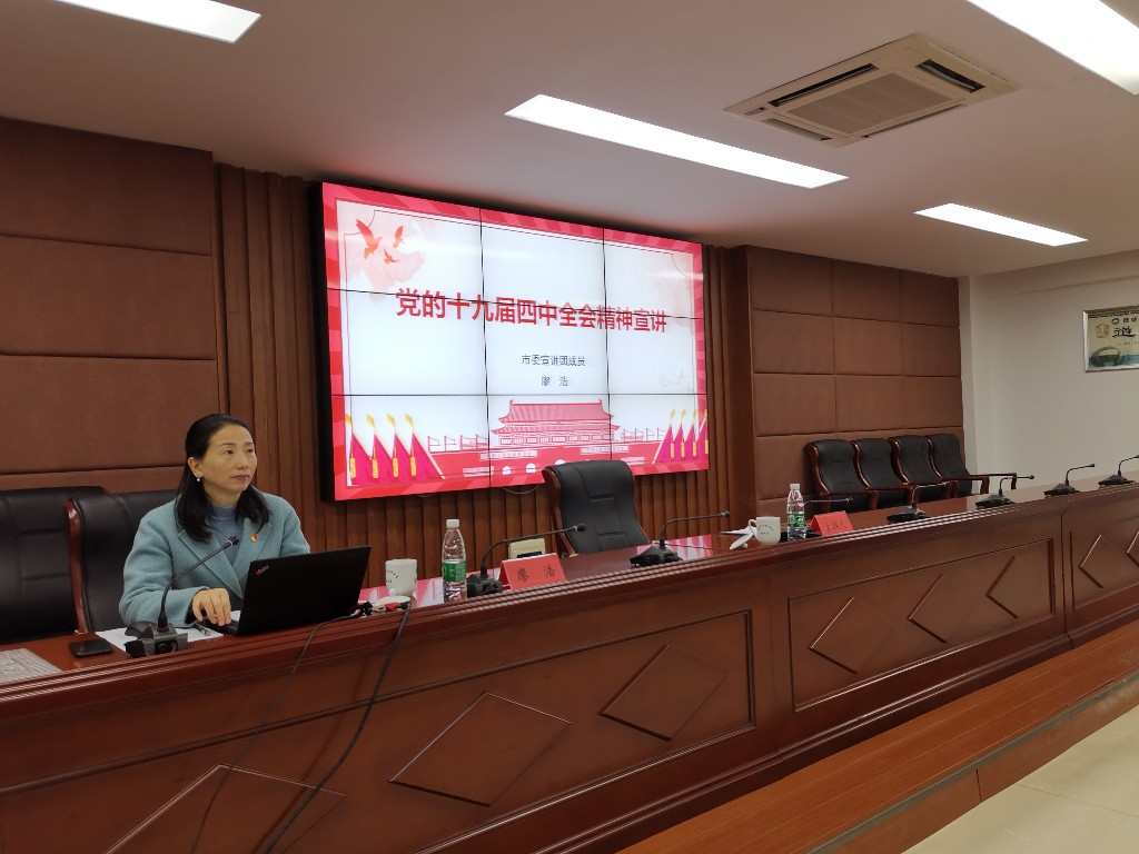 近日,醴陵市自然资源局组织召开学习贯彻党的十九届四中全会精神市委宣讲团报告会,邀请了醴陵市委宣讲团成员、市教育局信息中心副主任廖浩作四中全会精神宣讲报告。会议由局党组书记何文立主持,全体干部职工240余人参加。