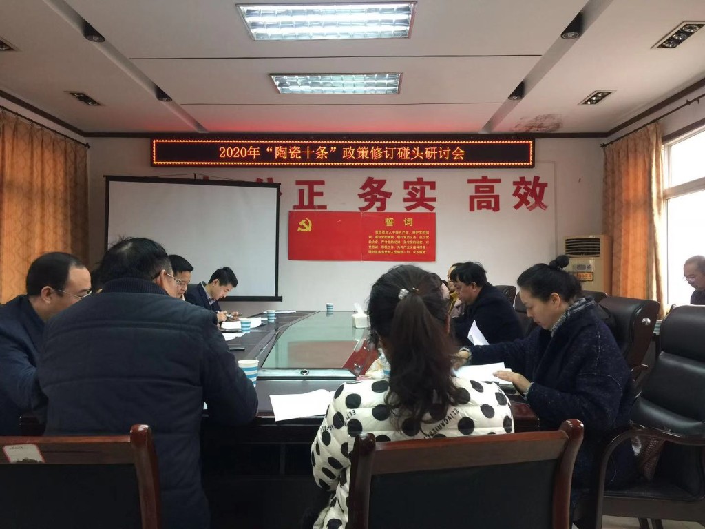 近日,市科工信局在后栋会议室召开2020年“陶瓷十条”政策修改碰头会。市科工信局、财政局、陶花服务中心、商务局等9家相关部门及12位行业协会、陶瓷企业代表参加。