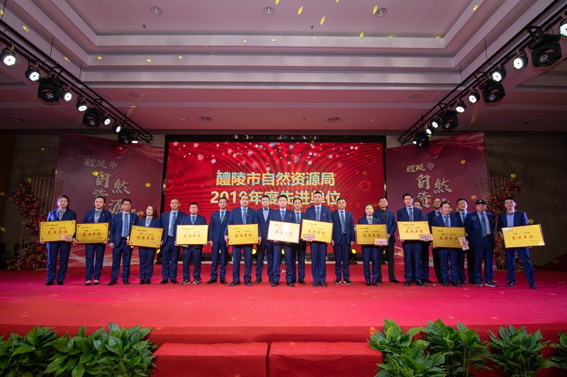 大会开始,局党组副书记、局长温国战首先上台致辞。他指出,2019年是极不平凡、卓有成效的一年。大事多、喜事多、收获多,共同见证了自然资源事业的扬帆起航,接受了市委巡察的政治检阅,战胜了历史罕见的洪涝灾害,经历了主题教育的思想洗礼,完成了人大常委会的工作评议。全体干部职工齐心协力、攻坚克难,以党建增强定力,以改革激发活力,以教育提升实力,以规范约束权力,突出“讲政治、强管理、抓改革、促民生”四个关键词,实现干部队伍更强、工作成绩更优、服务效率更高、群众评价更好的四大变化,交出了一份完美答卷。他强调,2020年是全面建成小康社会和“十三五”规划收官之年,全市自然资源系统要在市委市政府的坚强领导下,以习近平新时代中国特色社会主义思想为指导,坚持以政治建设为统领,打造干部铁军;坚持以改革创新为动力,强化担当作为;坚持以服务大局为己任,争创一流业绩,奋力推进自然资源事业再上新台阶。随后,局党组书记何文立宣读了醴陵市自然资源局表彰2019年度先进单位和先进个人的决定并颁奖。