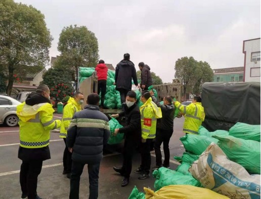 2月3日上午,醴陵市茶山镇汤家坪村建档立卡贫困户吴扬把刚采摘的万斤蔬菜送到镇政府大院,这些都是他捐赠的防疫物资。