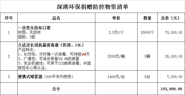 近日,深圳市深港产学研环保工程技术股份有限公司一行3人,将20000只口罩、5桶抗菌消毒液(医用19L)、5台便携式喷雾器,共计十余万元的抗疫物资送到醴陵市住建局,支持住建系统的疫情防控工作。