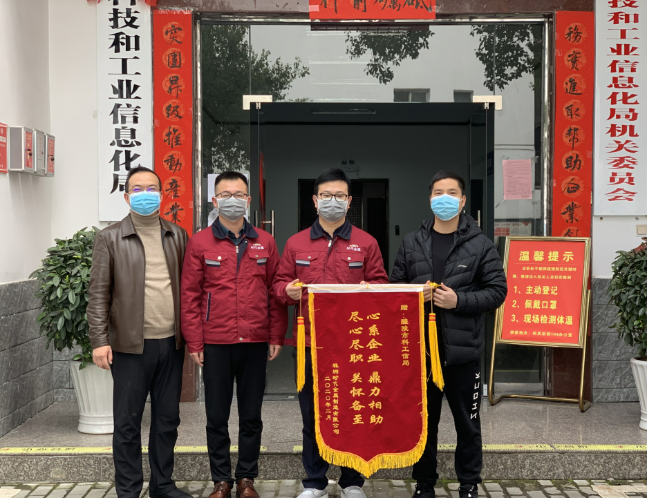 2月20日下午,株洲时代金属制造有限公司副总经理周剑波来到醴陵市科工信局送上了一枚锦旗,对疫情防控期间市科工信局的一系列“暖企行动”表示诚挚的感谢。“心系企业、鼎力相助,尽心尽责,关怀备至”,简单的16个字承载了企业对市科工信局这二十多天连续作战的认可,同时也是给科工信全体机关干部加油鼓劲。
