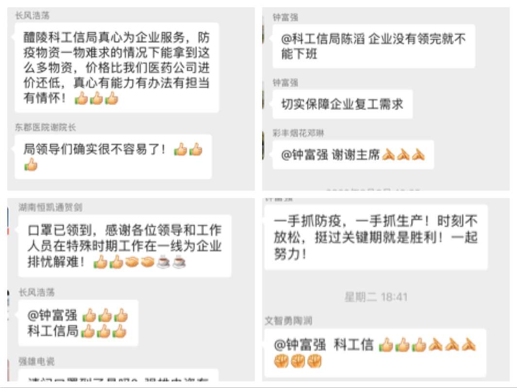 市科工信局的这一系列应时、及时的暖企举措获得了企业家们纷纷点赞。局长钟富强表示,全体干部要时刻提醒自己,要对得起企业对我们的信任和鼓励,把温暖企业四个字牢记心中,竭诚为企业搞好服务。政企同心,共克时艰,一起迎接春暖花开。