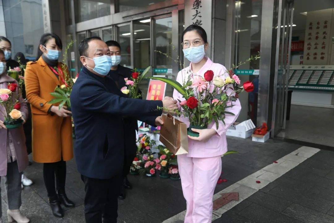 作为本次活动捐赠方,渌江集团捐赠了她们公司女同胞亲手装饰的鲜花40盆,爱心面膜1200张以及精美的手工贺卡。希望白衣天使们在全力以赴救治病患的同时,切实做好自身防护,守护好自己的健康。
