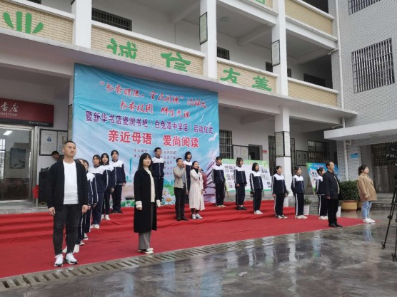 醴陵市新华书店向孩子们捐献了千多本正版图书,现场一一发放给了学校师生,同时鼓励学校师生多读书,“亲近母语,爱尚阅读”。