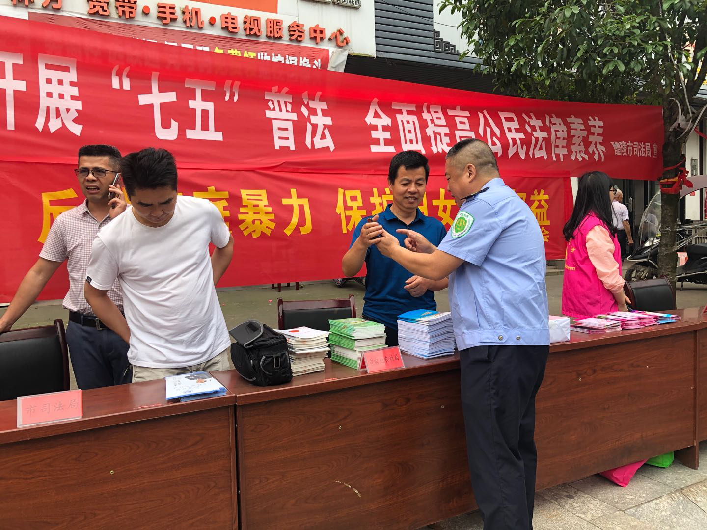 2020年是实施全民普法35周年,也是“七五”普法的收官之年。为了营造良好的全民“学法、懂法、用法”氛围,满足广大群众的法律知识需求,活跃群众文化生活,增强群众法治观念。5月25日清晨,醴陵市农业农村局联合司法局来到沈潭镇开展“七五”普法宣传教育活动。