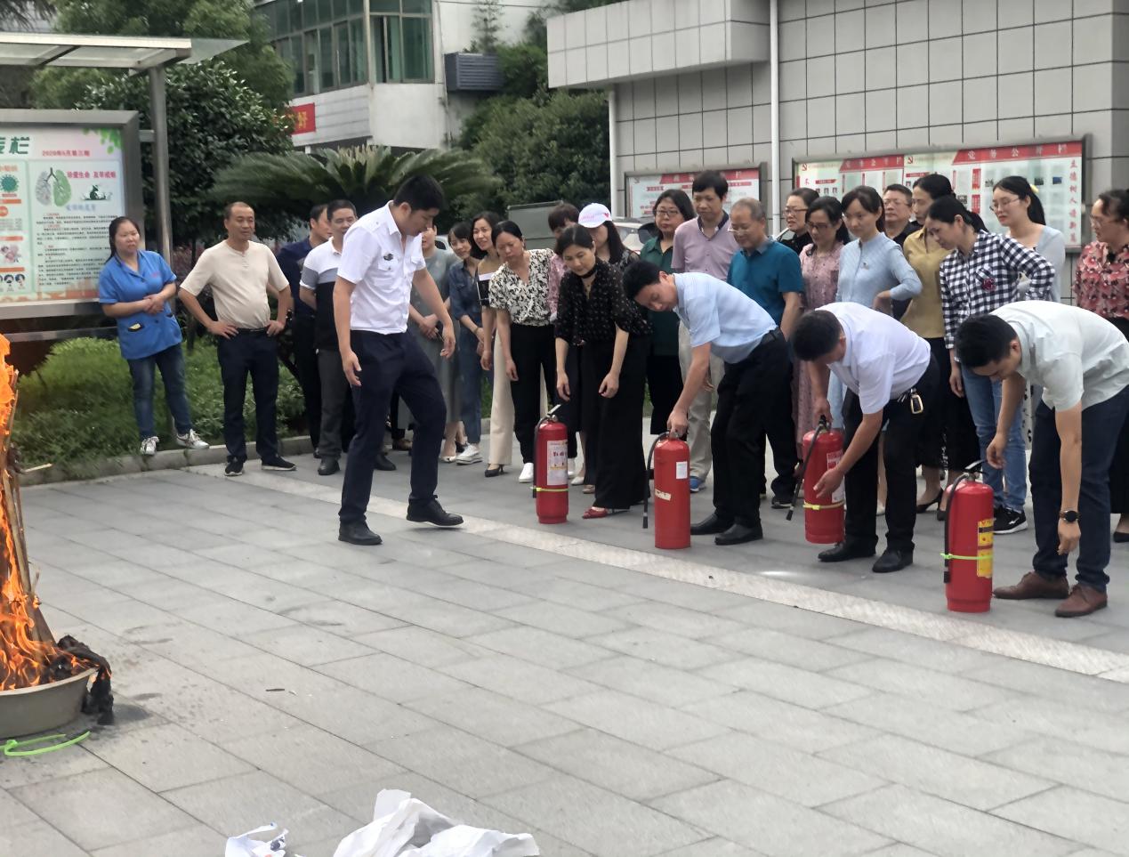 室内培训结束后,阳教官带领大家开展了室外消防模拟演练,让参训人员了解了正确使用灭火器的方法及灭火技巧。