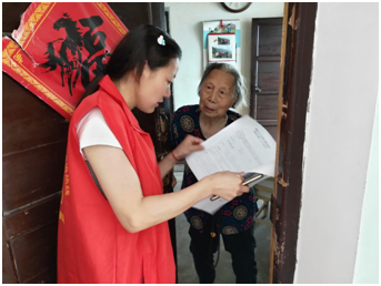 活动过程志愿者向社区居民发放《家中用电安全的注意事项》科普宣传资料。