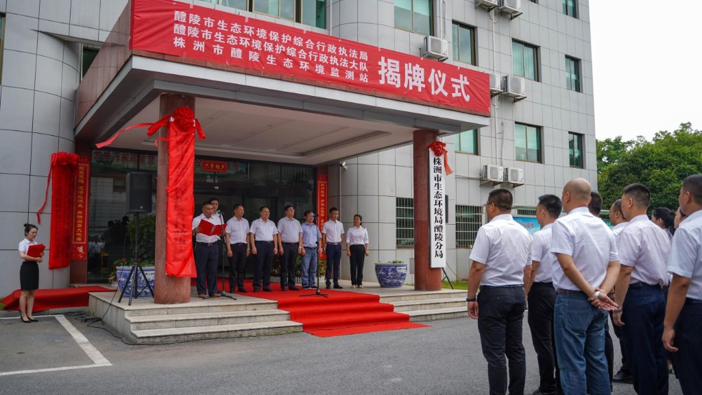 醴陵市生态环境保护综合行政执法局、醴陵市生态环境保护综合行政执法大队、株洲市醴陵生态环境监测站举行揭牌仪式