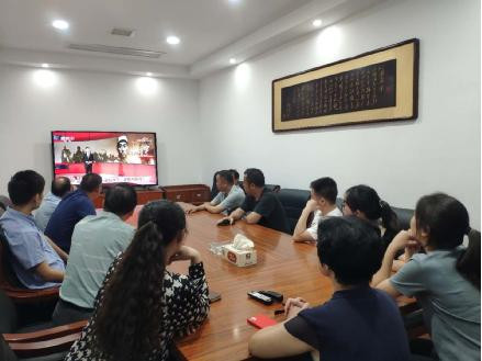会议室内气氛庄严肃穆,大家共同回顾那段可歌可泣、历经磨难的岁月,重温中华儿女用热血和生命铸就的抗战精神,缅怀革命先烈的丰功伟绩。当仪式正式开始,伴随着嘹亮的义勇军进行曲响起,在场的干部职工跟着一起高唱国歌,歌唱伟大祖国,歌唱中国人民抗日战争取得的伟大胜利。