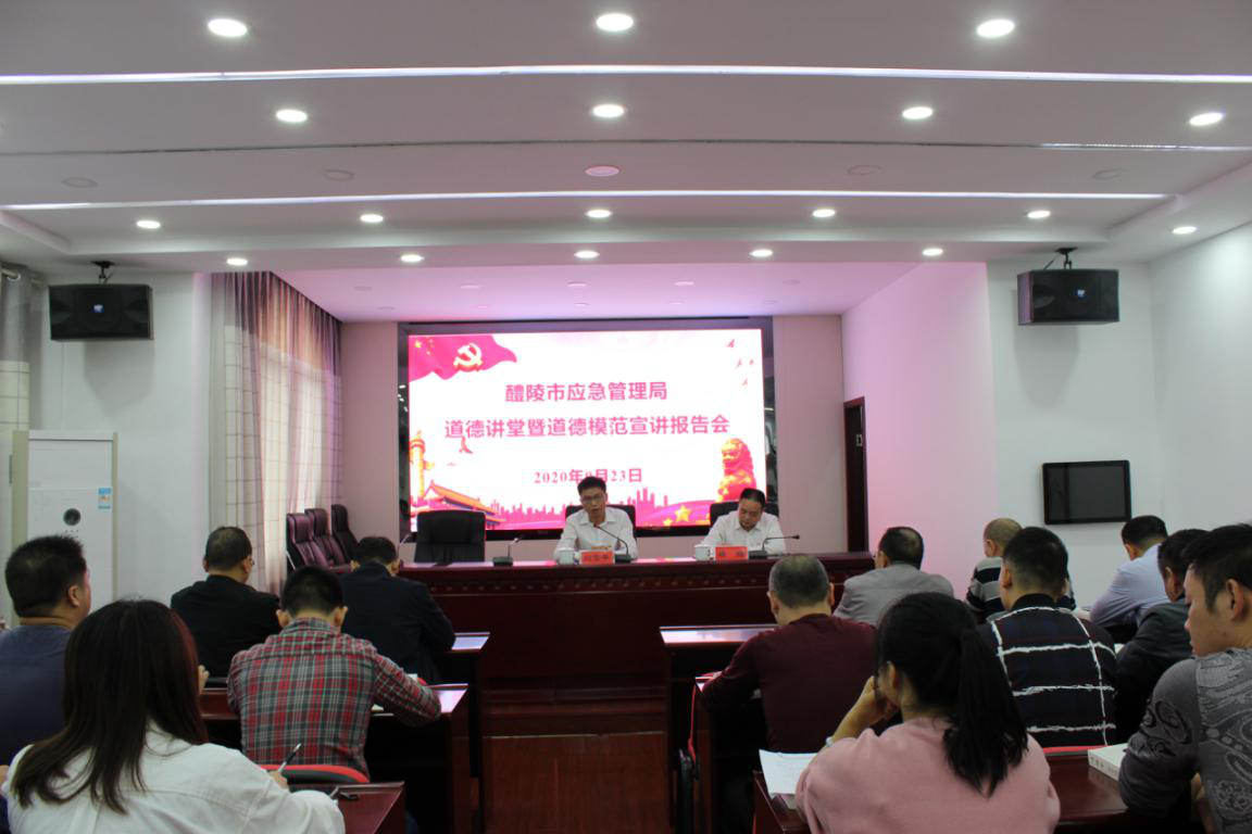 弘扬社会公德、职业道德、家庭美德、个人品德、传递正能量。9月23日上午,市应急局道德讲堂暨道德模范宣讲报告会在局机关七楼会议室举行。党组书记、局长杨翔主持宣讲会,机关全体干部职工参加。