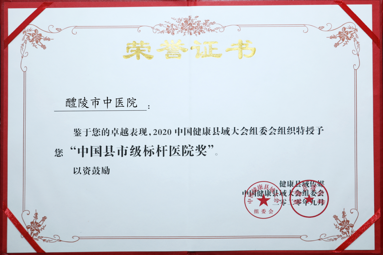 醴陵市中医院荣获“中国县市级标杆医院”、“中国县市级医院健康传播力奖”、“全国医共体建设示范奖”。党委书记肖宏韬荣获“中国县市级医院管理之星”,宣传科科长张孟芳荣获“县域基层优质服务之星”。