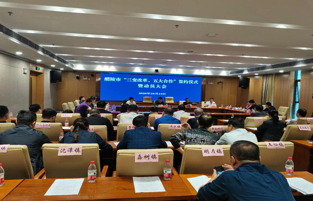 10月14日上午,全市“三变改革,五大合作”签约仪式暨动员大会召开。会议深入贯彻落实中央和省市关于农村改革部署要求,对全市“三变”改革试点工作进行了全面的动员部署。我市市委副书记曾毅鹏出席会议并讲话,相关部门单位主要负责人、分管负责人,各镇(街道、示范区)党(工)委书记,来龙门街道上洲社区、白兔潭镇汆溪村、泗汾镇茶田村村书记、主任及派驻试点村工作队人员参加会议。