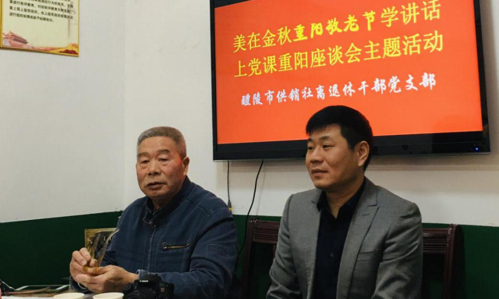 莫道桑榆晚,为霞尚满天。10月22日上午,醴陵市供销社40多名离退休老干部、老党员欢聚一堂,在“美在金秋老党员之家”开展以庆祝我国第11个“敬老月”《学讲话、上党课、庆重阳》主题活动。