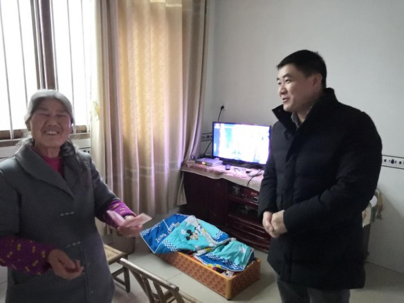 12月15日,徐江像往常一样走访建档立卡户,了解贫困户家中御寒设备准备情况。在贺端全家中,他发现贺端全老人的三床棉被都是用了好几年了,当即便将自己的钱包内仅剩的内500元现金交给她,并反复叮嘱老人添置新棉被。