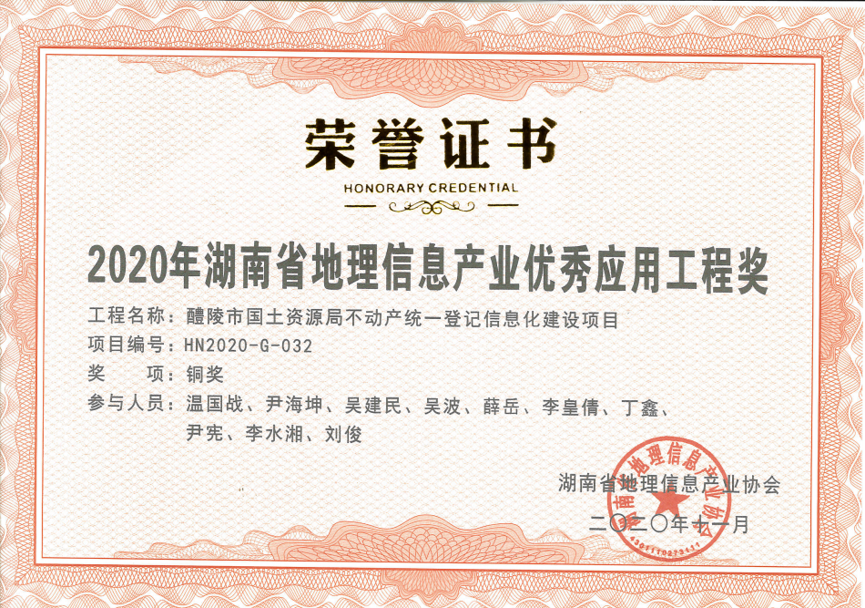 (2020湖南省地理信息产业优秀应用工程铜奖)