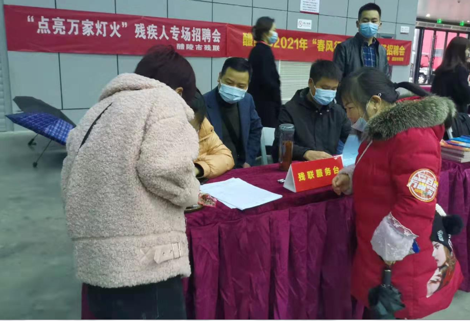 2月25日,由中共醴陵市委、醴陵市人民政府、株洲市人力资源和社会保障局主办,醴陵市残疾人联合会、醴陵市人力资源服务行业协会等多家单位协办的2021年“春风行动·稳就业”招聘会在中国陶瓷谷国际会展中心举行,活动现场“点亮万家灯火”残疾人就业专场招聘吸引了众多残疾人参加,用人单位与残疾人求职者双向交流平台,给残疾人带来就业“阳光”。